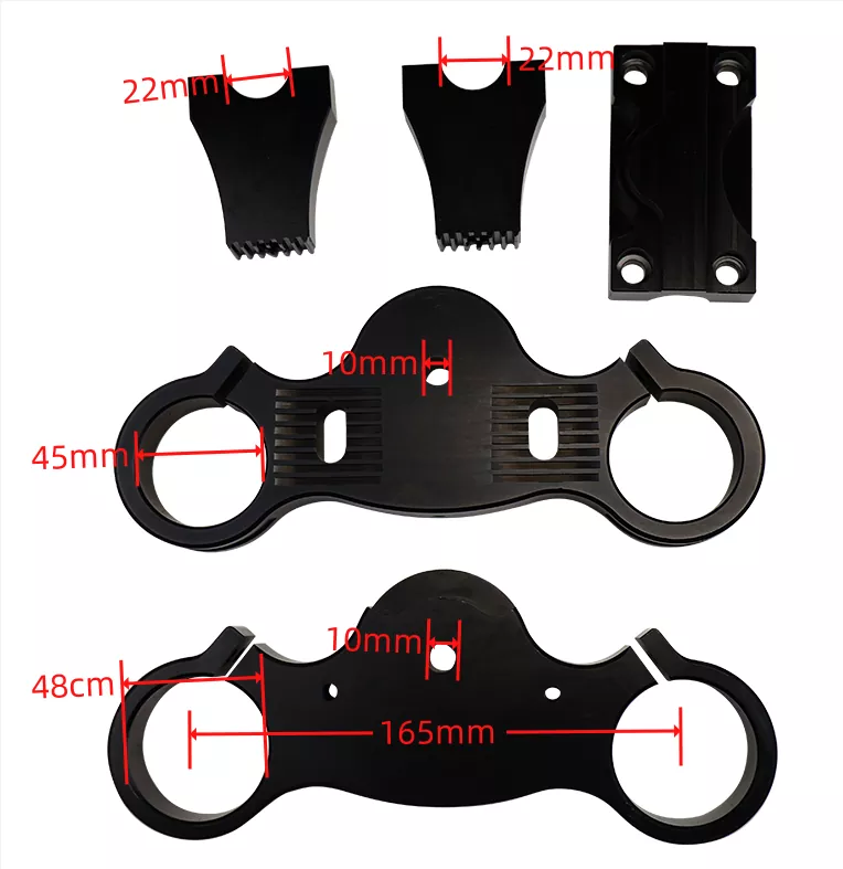 Vår CNC -aluminium trippelklämma kombinerar precisionsteknik med mångsidighet. Vi erbjuder provtjänster, så att du kan testa klämman innan du gör större beställningar. Anpassa mitthålets diameter efter dina behov, med alternativ inklusive 12 mm, 15 mm och 22 mm. Vi levererar också högkvalitativa bultar (M10*200 mm, M10*220mm) och skruvar för en komplett installation. Välj CNC -aluminium trippelklämma för tillförlitlig prestanda och förbättrad hantering på din motorcykel.