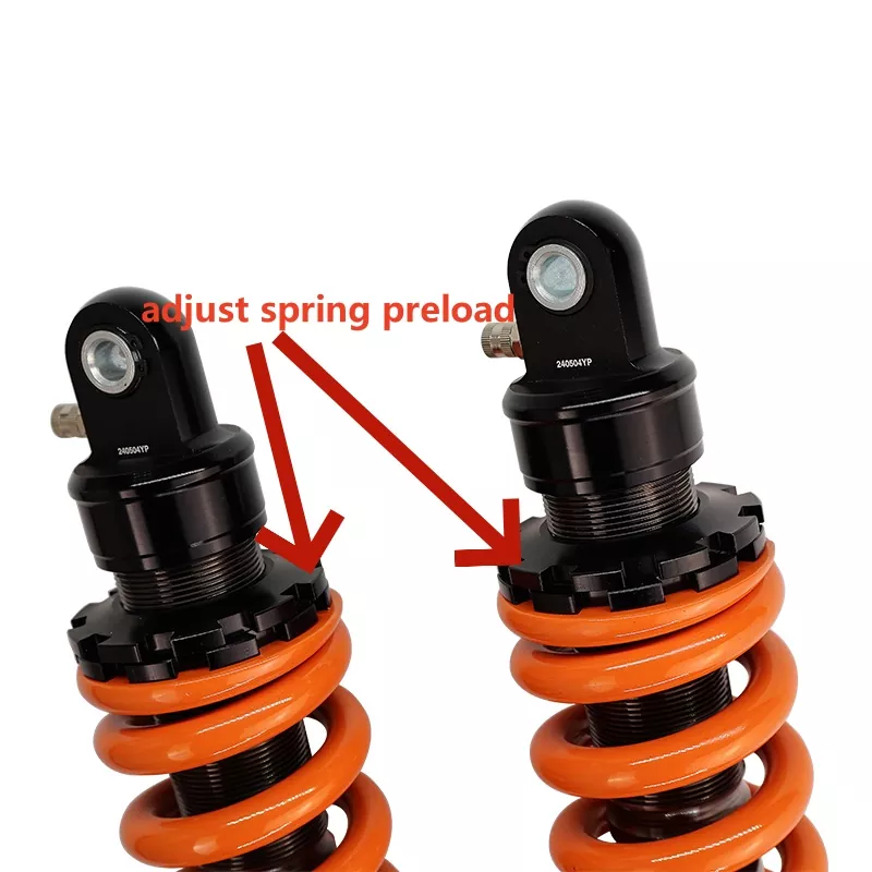 Dirt Bike Single Justerbar bakre stötdämpare erbjuder exakt kontroll med sin justerbara returdämpning. Medurs rotation saktar ner returen för en mjukare åktur, medan moturs rotation ökar dämpningshastigheten för en fastare respons. Denna funktion gör det möjligt för förare att anpassa sina fjädringsinställningar för optimal prestanda i olika terränger.