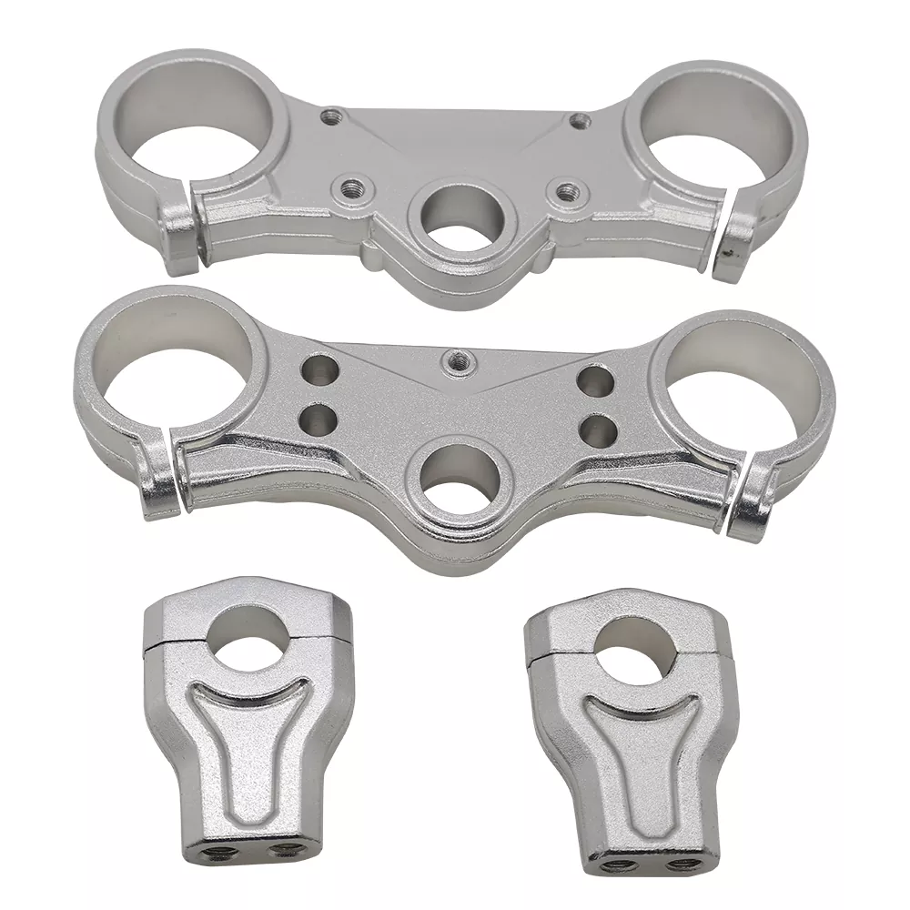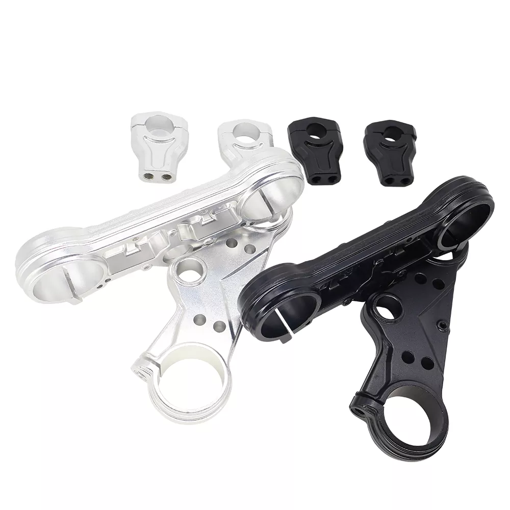 Visad från flera vinklar är Electric Bike Forged Triple Clamp ett måste. Finns i elegant svart och elegant silver, du kan välja den perfekta färgen för att matcha din cykel. Denna anpassning förbättrar inte bara din åkturs utseende utan säkerställer också exceptionell hållbarhet och prestanda. Förhöj din cykelupplevelse med denna snygga och pålitliga komponent!